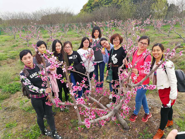 中午飽餐一頓后是觀賞桃花。桃之夭夭,灼灼其華,所有的浪漫與憧憬都留在這粉紅色中間,十里桃林算什么,此刻這百里千里的桃花卻為我們而綻放!
